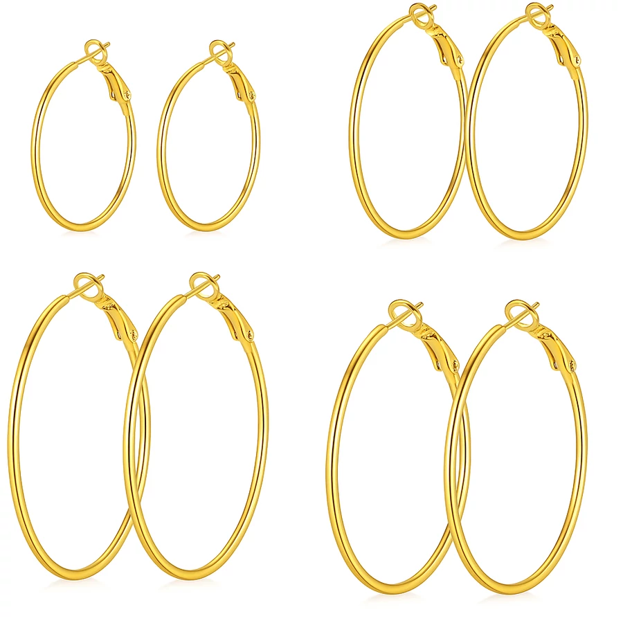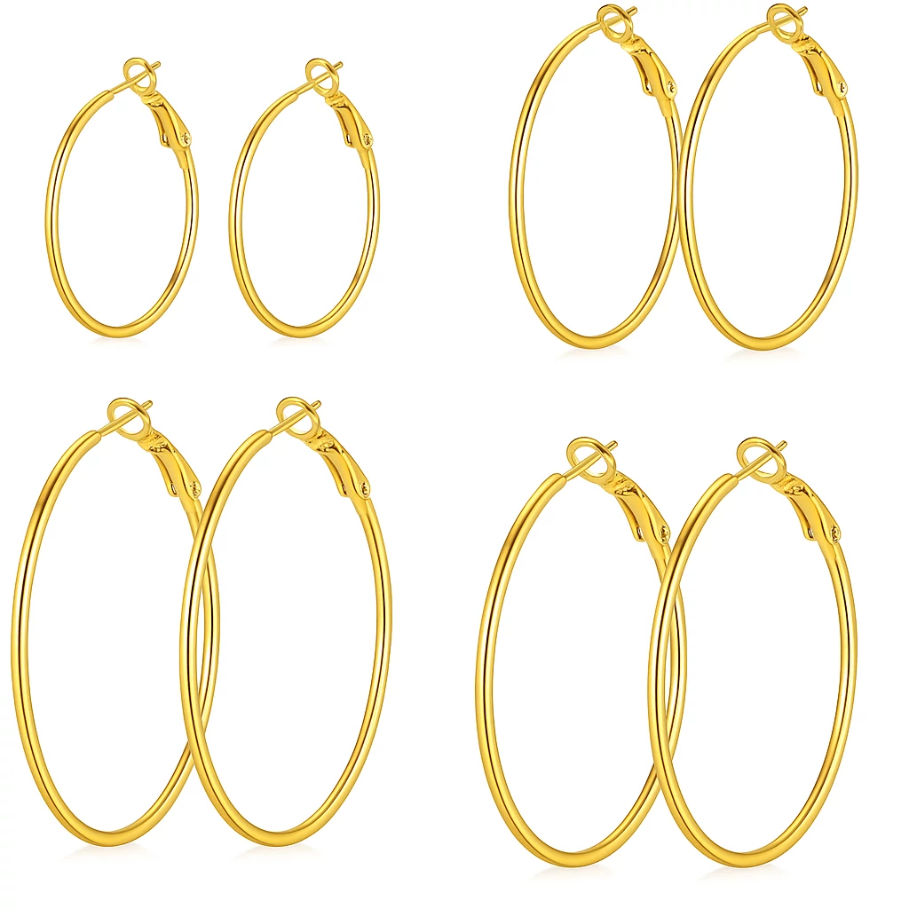 Ez a 4 pár aranyozott acél karika fülbevaló szett elegáns és sokoldalú választás minden alkalomra. A 14 karátos arannyal bevont nemesacél fülbevalók négy különböző méretben érkeznek, így könnyedén variálhatod őket a napi hangulatodhoz, öltözékedhez vagy eseményhez igazítva. A klasszikus karika forma időtlen megjelenést biztosít, az arany szín pedig extra fényt és nőies eleganciát kölcsönöz.