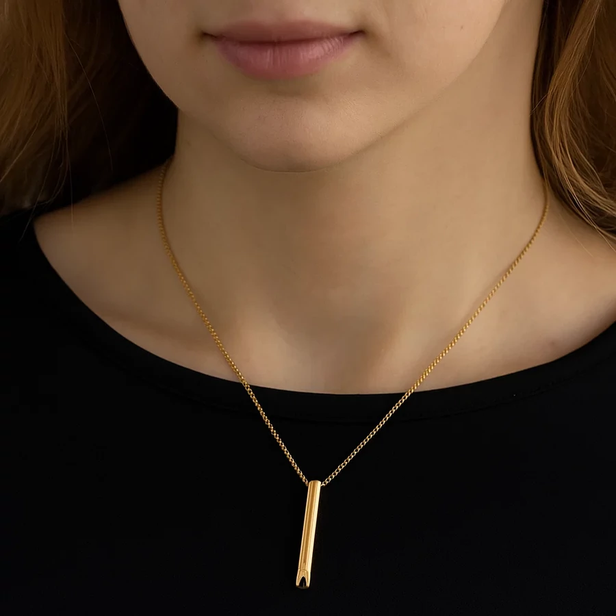 Használata egyszerű: vegyél mély levegőt, majd lassan fújd ki a levegőt a 6 cm-es medálon keresztül. Ez a technika támogatja a relaxációt, javítja a koncentrációt és segít a stressz szintjének csökkentésében a mindennapok során.