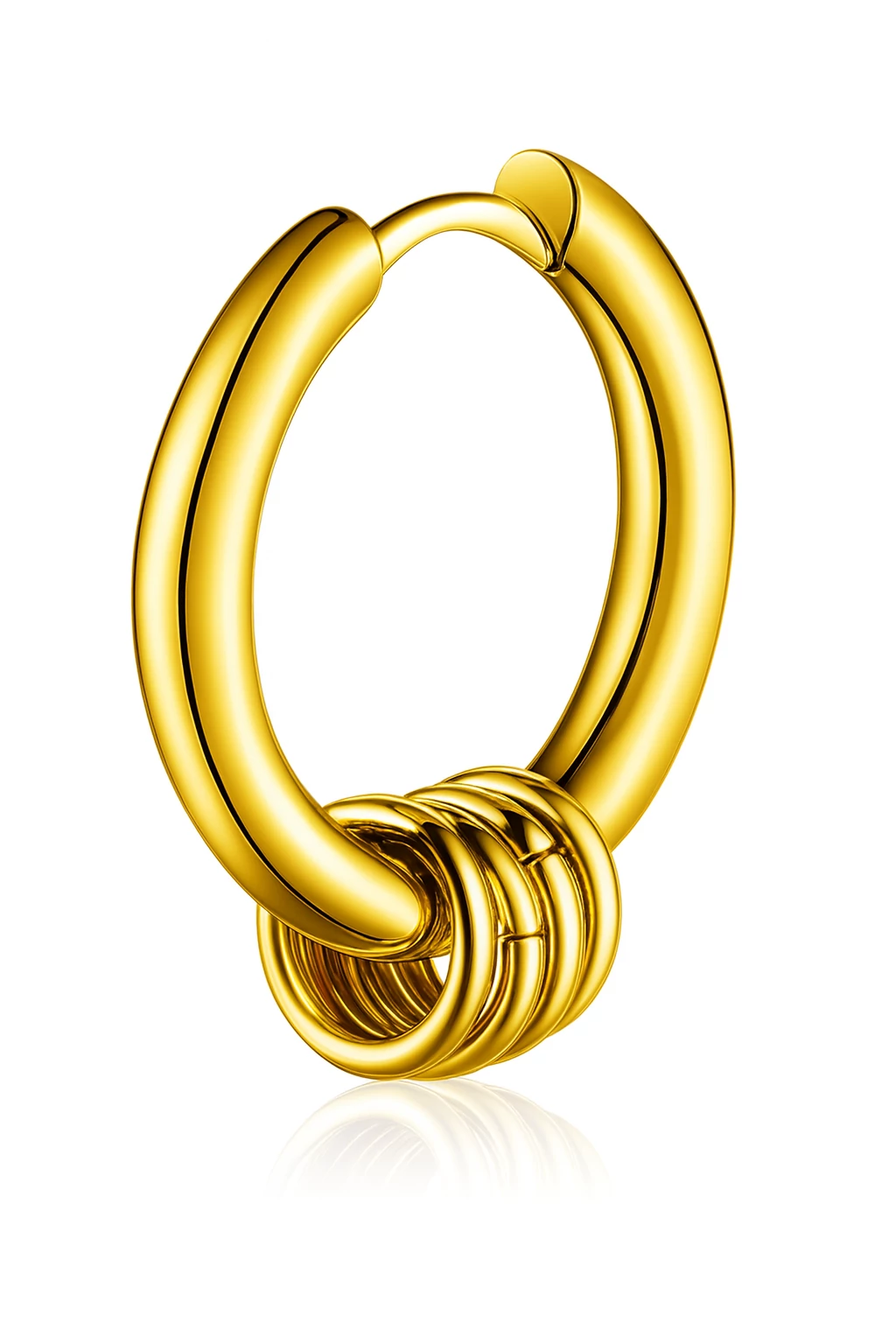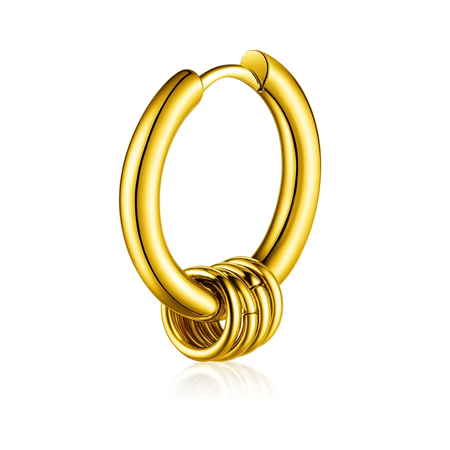 A kör formájú fülbevaló belsejében öt apró, függő díszmedál lóg, amelyek finom mozgásukkal extra dinamizmust adnak az ékszernek. A törzsi motívumok ihlette kialakítás látványos, mégsem túl harsány – így akár irodai környezetben, akár koncerten is megállja a helyét. Tökéletes azoknak, akik szeretik a karakteres, mégis hordható fülbevalókat.