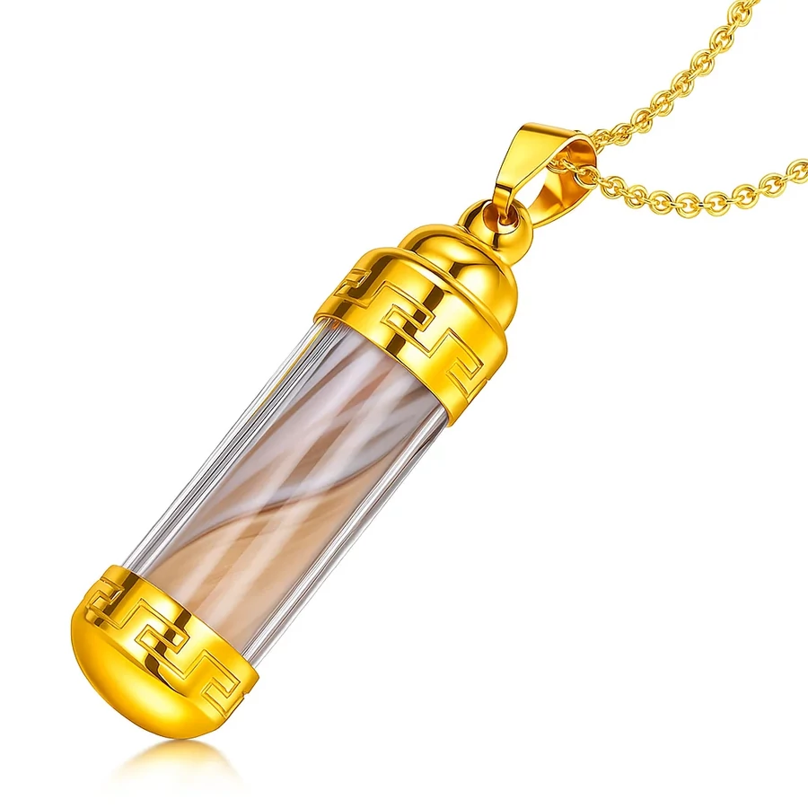 A nyaklánc anyaga arany színű rozsdamentes acél, amely nemcsak esztétikus, hanem rendkívül tartós is. A csavaros záródás biztosítja, hogy amit az üvegcsébe helyezel, az biztonságban marad. A 4,2 cm-es medál méret ideális: feltűnő, mégis kifinomult.