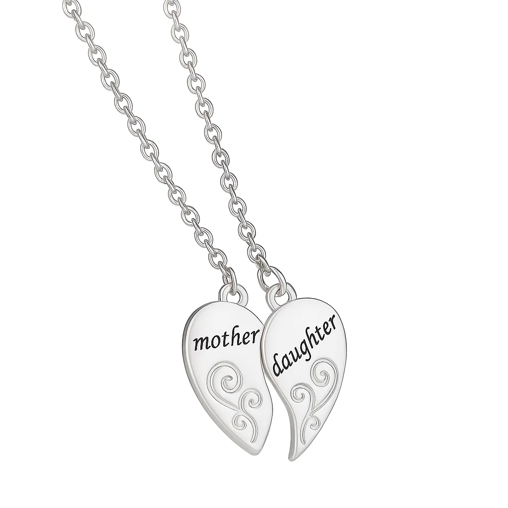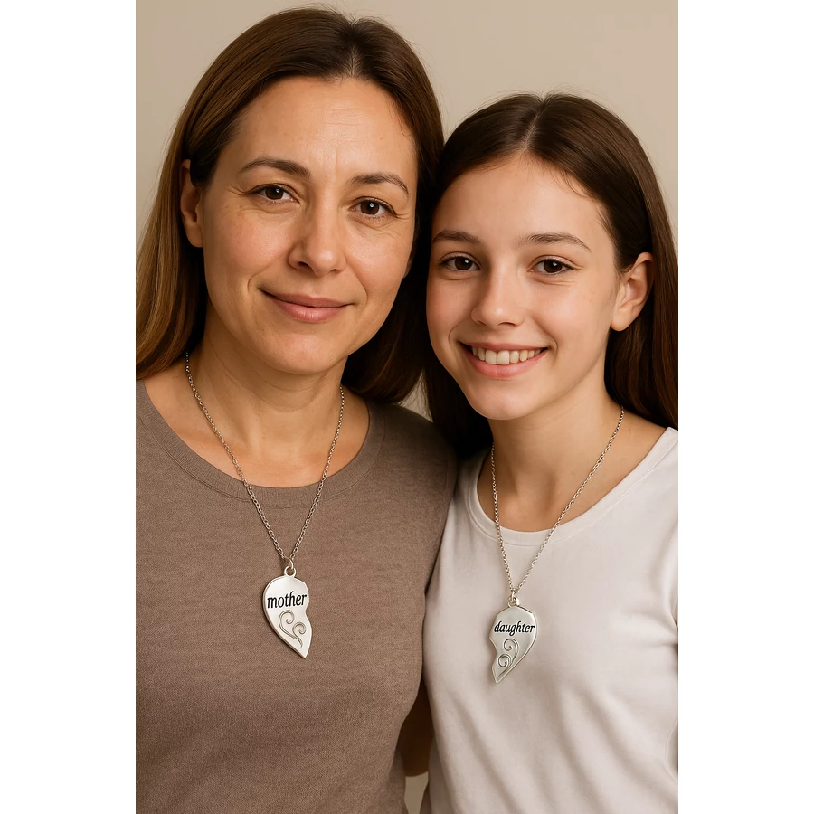 Az anya-lánya páros nyaklánc különleges ékszer, amely kifejezi az anya és lánya közötti erős köteléket. A két fél szív alakú medál összeillesztve teljes szívet alkot, egyikre az „anya”, másikra a „lánya” felirat került, így minden viselésnél az összetartozás érzését idézi fel.