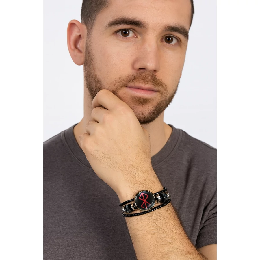 Ez a Berserk bőr karkötő nem csupán egy divatos ékszer, hanem egyfajta hűségnyilatkozat is a sorozat világához. Háromsoros kialakítása fekete bőrből készült, amely nemcsak tartóssá, hanem letisztultan vagánnyá is teszi ezt az uniszex kiegészítőt. Az üvegből készült, ikonikus logóval ellátott medál igazi látványelem, ami azonnal felismerhetővé teszi a Berserk világát kedvelők körében.