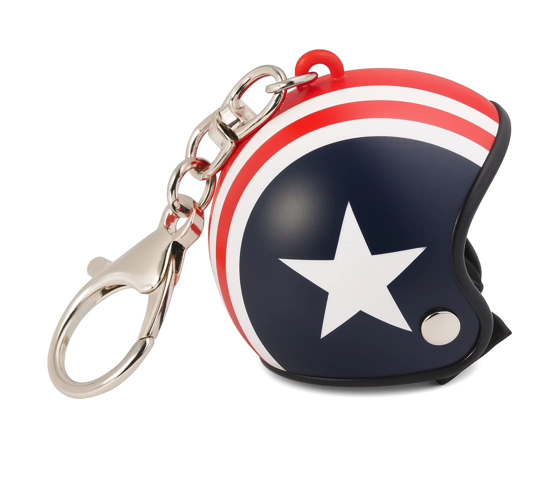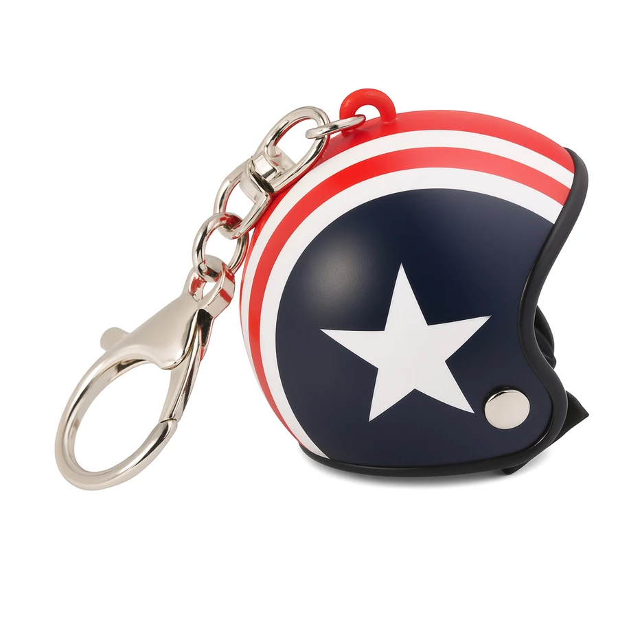 A bukósisak kulcstartó remek választás minden motorrajongó számára, akik szeretnék magukkal vinni a motorozás hangulatát a hétköznapokban is. A valósághűen kidolgozott bukósisak forma a szabadság és kaland szimbóluma, amely piros-fehér-kék színeivel az amerikai stílust idézi. Ez a kulcstartó nemcsak praktikus, hanem stílusos kiegészítő is, amely garantáltan vonzza a tekinteteket.