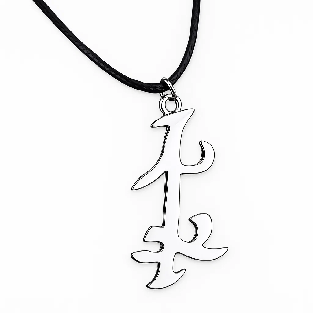 A nyaklánc fémötvözetből és bőrszíjból készült, így egyszerre elegáns és strapabíró. Az ezüst színű medál (3,5 x 2,6 cm) modern megjelenést kölcsönöz, miközben a bőrszíj hossza 45 és 50 cm között állítható, így mindenki számára ideális viselet. Ez a rajongói ékszer nemcsak a sorozat szimbolikáját hordozza, hanem stílusos kiegészítőként is remekül megállja a helyét a mindennapokban.