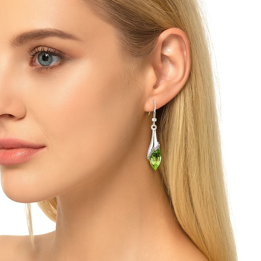 A csepp forma elegánsan megnyújtja az arc vonalait, miközben a kristályos csillogás finoman vonzza a tekinteteket. Ez a kombináció bármilyen stílushoz könnyedén illeszkedik, legyen szó farmeres hétköznapról vagy alkalmi ruháról. A zöld tónus különösen jól mutat barna, vörös vagy sötét hajjal, de szőkékkel is tökéletes összhangot alkot.
