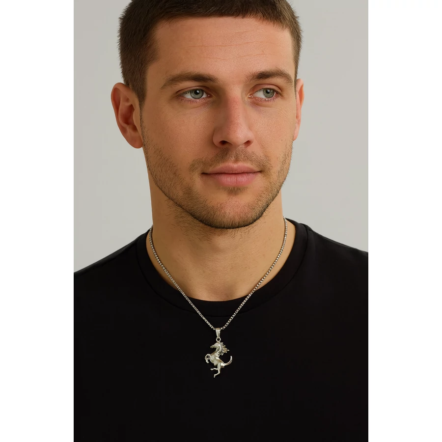 Ez a lovas nyaklánc nem csupán egy ékszer, hanem egy életérzés kifejezője. A részletgazdag ló medál kecses mozdulataival és ezüstös fényével a szabadságot, erőt és hűséget jelképezi. Az egész alakos ló motívum látványos, mégis finoman kidolgozott, így tökéletes választás azoknak, akik szenvedélyesen kötődnek a lovakhoz.