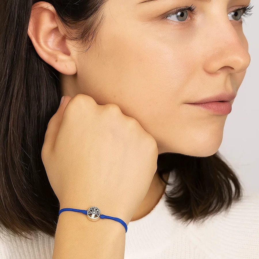 A karkötő 13 és 19 cm között állítható, így szinte minden csuklóméretre ideálisan illeszkedik. A fonott zsinór tartós és kényelmes, három színváltozatban választható: fekete, kék vagy piros. A fémötvözetből készült, ezüstszínű életfa medál finoman kidolgozott, visszafogott eleganciát sugároz.