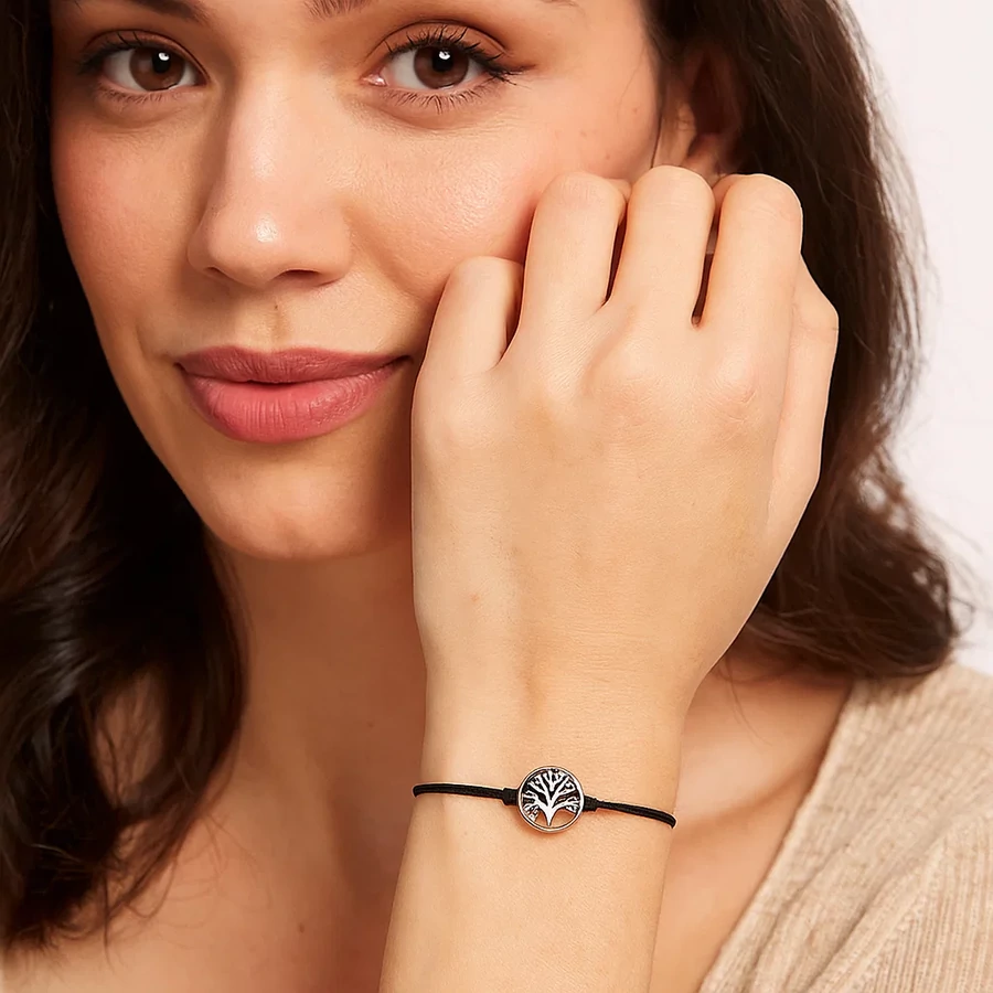 A karkötő 13 és 19 cm között állítható, így szinte minden csuklóméretre ideálisan illeszkedik. A fonott zsinór tartós és kényelmes, három színváltozatban választható: fekete, kék vagy piros. A fémötvözetből készült, ezüstszínű életfa medál finoman kidolgozott, visszafogott eleganciát sugároz.