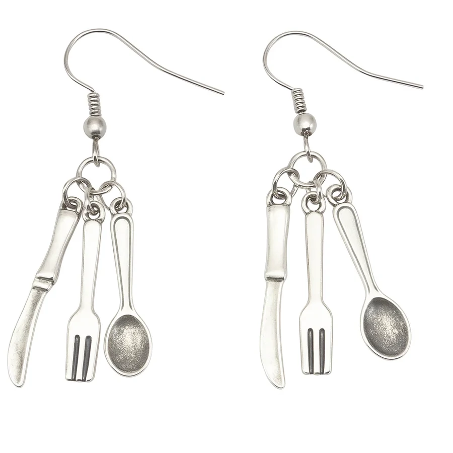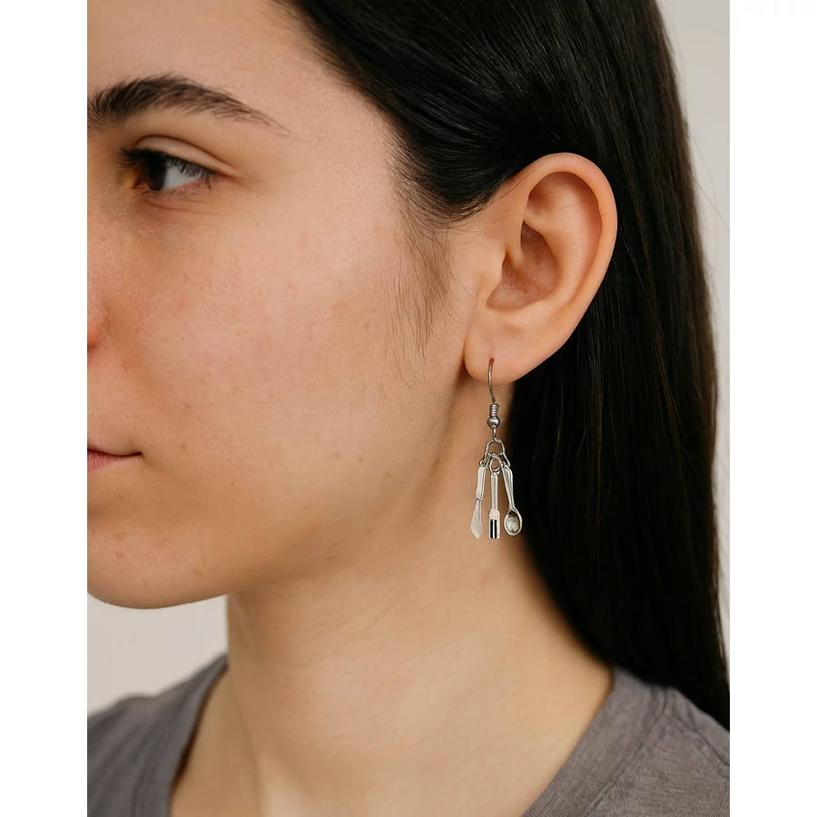 Az evőeszköz fülbevaló tartós fémötvözetből készült, amely biztosítja a hosszú élettartamot. Az ezüst szín elegáns megjelenést kölcsönöz, miközben a részletes kidolgozás kiemeli a humoros dizájn finom részleteit. A medálok 2,5 cm hosszúságúak, így kényelmes viseletet biztosítanak anélkül, hogy túl hivalkodóak lennének.