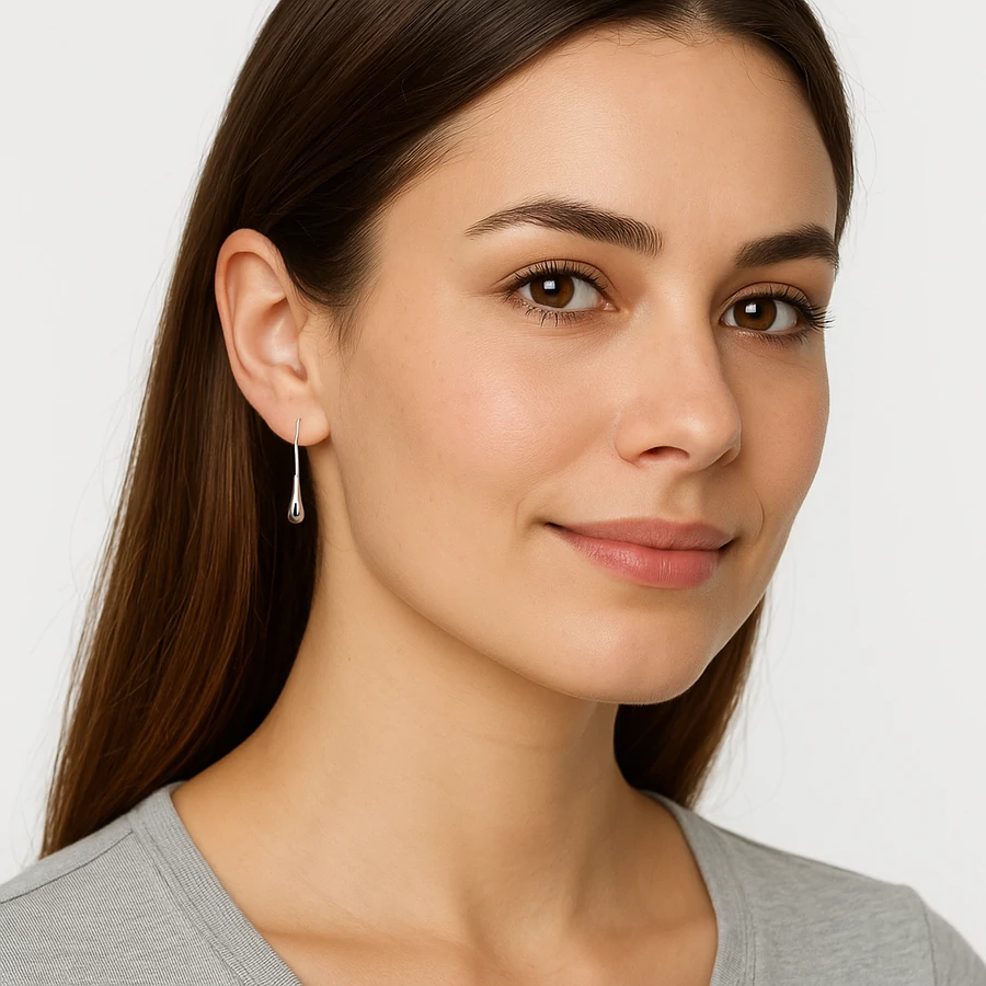 Ez a csepp alakú ezüst fülbevaló egyaránt passzol a visszafogott, irodai megjelenéshez és a kifinomult alkalmi öltözékhez is. A polírozott felületű 925-ös finomságú ezüst ragyogó fényt tükröz vissza, kiemelve arcod természetes szépségét. A forma elegánsan követi a fül ívét, így modern, mégis klasszikus stílust sugall.