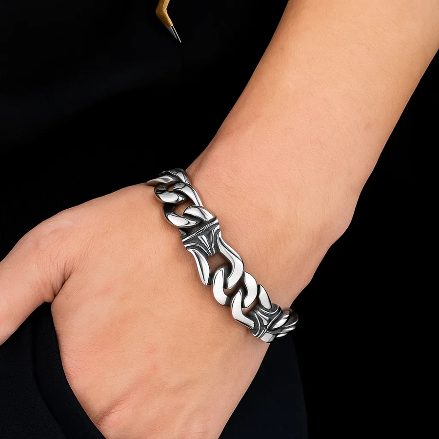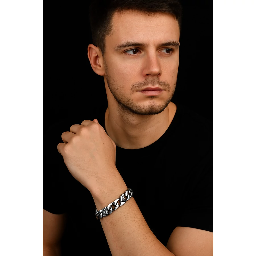 A karkötő formavilága a klasszikus férfias erőt ötvözi a modern stílussal, így bármilyen öltözéket feldob. Nemcsak motoros dzseki mellé mutat jól, hanem egy egyszerű inggel vagy pólóval is látványos hatást érhetsz el. Ez a kiegészítő garantáltan a figyelem középpontjába helyez!