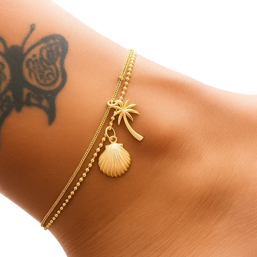 Kétsoros pálmás-kagylós bokalánc – nyári életérzés a lábaidon