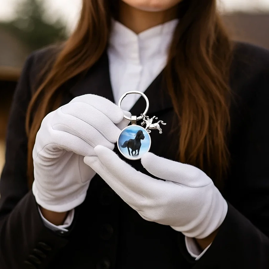 A kulcstartó fémötvözetből és üvegből készült, így hosszú távon is megőrzi szépségét és minőségét. Az üvegmedál 2,5 cm-es átmérője feltűnő, mégis ízléses kiegészítő, a 2 x 1,3 cm-es ló medál pedig aprólékos részleteivel ragadja magával a tekintetet. Ez a kombináció praktikus méretet és különleges dizájnt biztosít, amely tökéletes mindennapi használatra és ajándékozásra egyaránt.