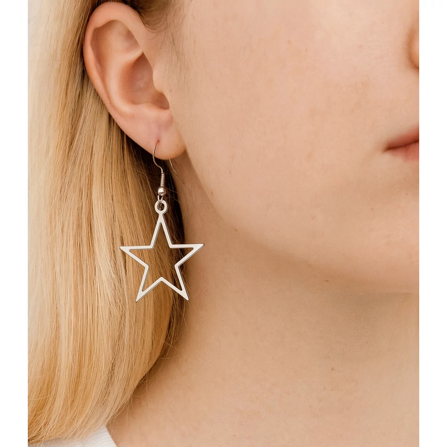 A kivágott csillag fülbevaló különleges formavilágával és minimalista dizájnjával azonnal magára vonja a figyelmet. Az ezüst színű, csillag alakú fülbevaló kifinomult, mégis egyedi kiegészítő, amely egyszerre sugároz játékosságot és eleganciát. Bármilyen öltözékkel könnyedén kombinálható, legyen szó laza hétköznapi viseletről vagy egy elegáns esti megjelenésről.