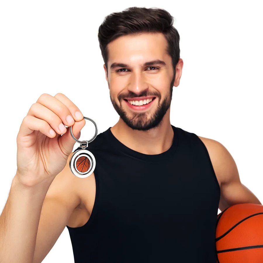 Különleges kosárlabdás kulcstartó forgatható kosárlabda motívummal. Ideális ajándék kosárlabda rajongóknak, tartós és stílusos kialakítással minden alkalomra.