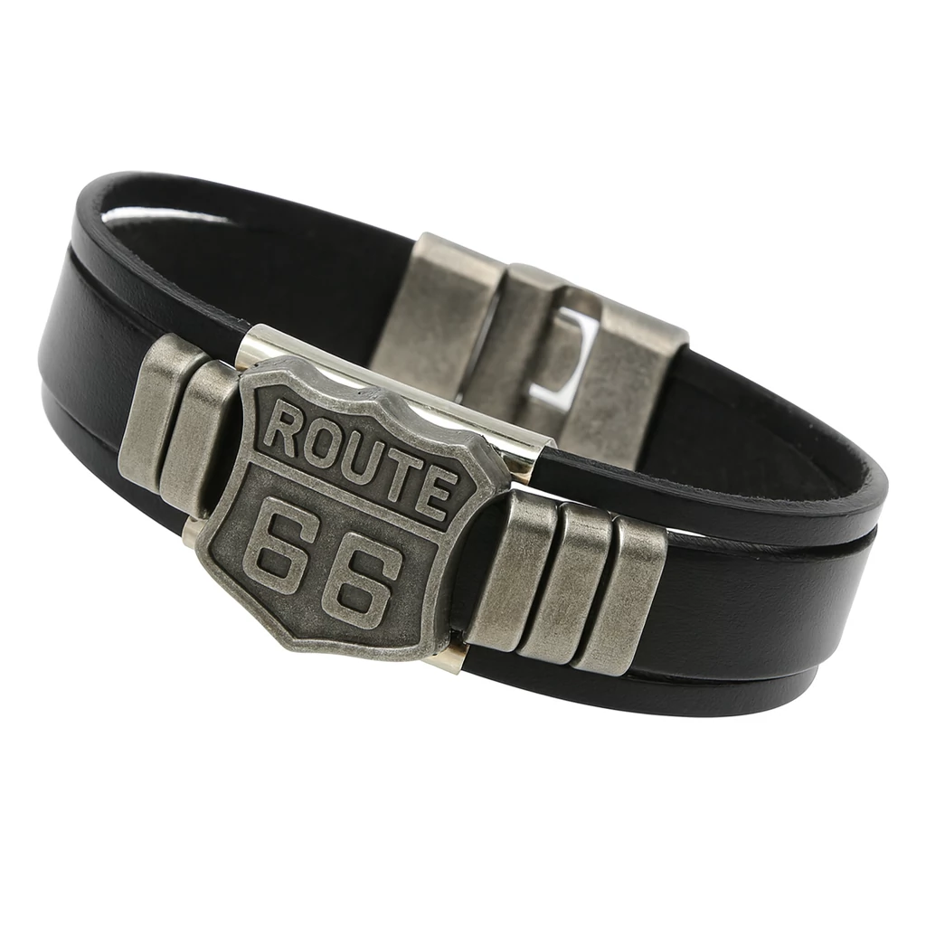 A karkötő puha, mégis tartós fekete bőrből készült, amely kellemes tapintású és kényelmes a csuklón. A középső Route 66 tábla fémötvözetből készült, így nemcsak látványos, hanem ellenálló is. A 20 cm hosszúság ideálisan illeszkedik a legtöbb férfi csuklóra, és a precíz kidolgozás garantálja a tartósságot.
