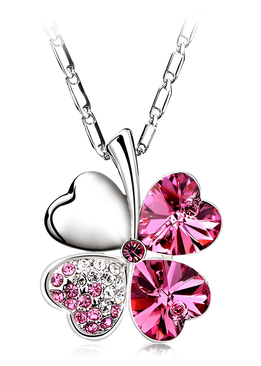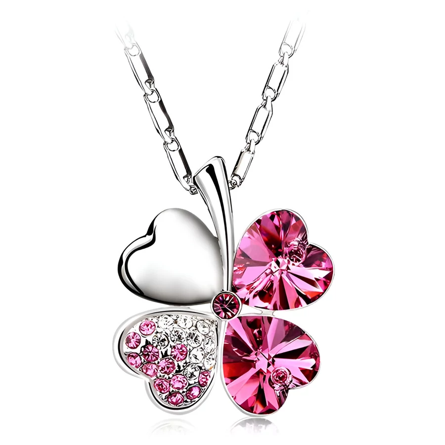 Pink strasszos négylevelű lóhere nyaklánc