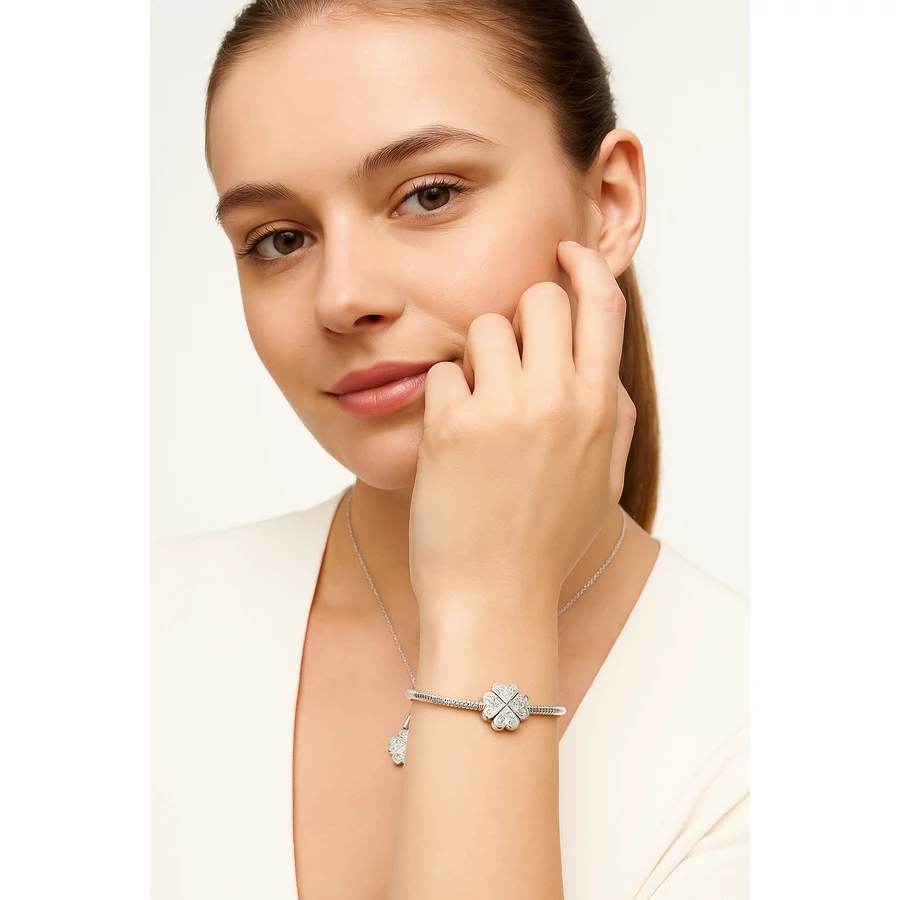 Az ezüst színű fémötvözet és a ragyogó strasszkövek időtálló kombinációja egyszerre modern és nőies. A szerencsehozó charm könnyen tisztán tartható, elegendő egy puha kendővel áttörölni, hogy visszanyerje csillogását. Praktikus méretének köszönhetően diszkréten viselhető, mégis figyelemfelkeltő darab.