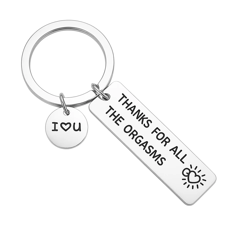 Poénos és stílusos orgazmus kulcstartó pároknak, rozsdamentes acélból. Tökéletes romantikus ajándék nőknek és férfiaknak egyaránt.