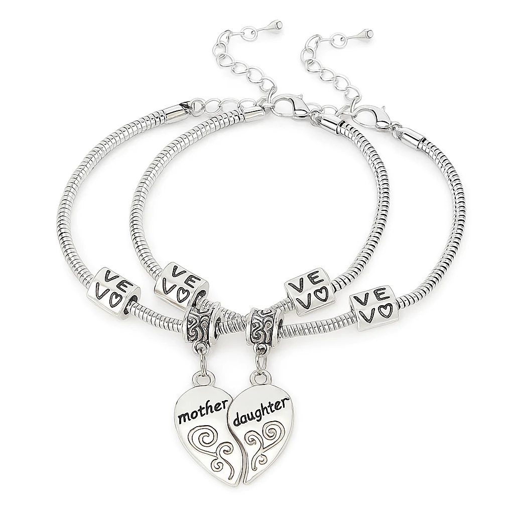 Ez a különleges anya-lánya karkötő szett szívből jövő módon fejezi ki a szeretetet, ami összeköti az anyát és lányát. A két karkötő medálja egy-egy fél szív, melyek összeillesztve egy egész egységet alkotnak – pontosan úgy, ahogy ti is egymást egészítitek ki. Az egyik medálon a „Mother”, a másikon a „Daughter” felirat olvasható, így ez az ékszer igazi szimbóluma a bensőséges kapcsolatnak.