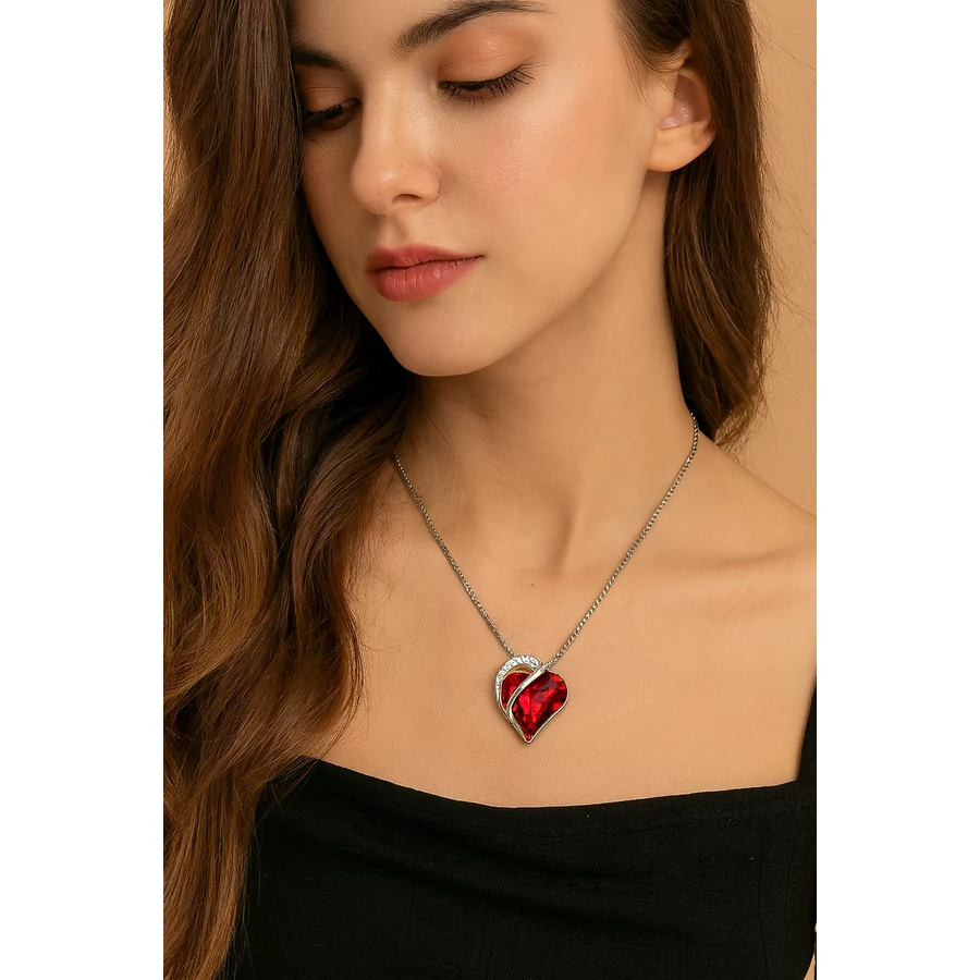 A nyaklánc minőségi fémötvözetből és csillogó kristályból készült, amely hosszú távon is megőrzi szépségét. Az ezüstszínű medálkeret tökéletesen kiemeli a piros kristály fényét, így minden tekintetet magára vonz. A 12 x 12 mm-es szív medál és a 46–51 cm között állítható lánc ideális arányokat biztosít a kényelmes és elegáns viselethez.