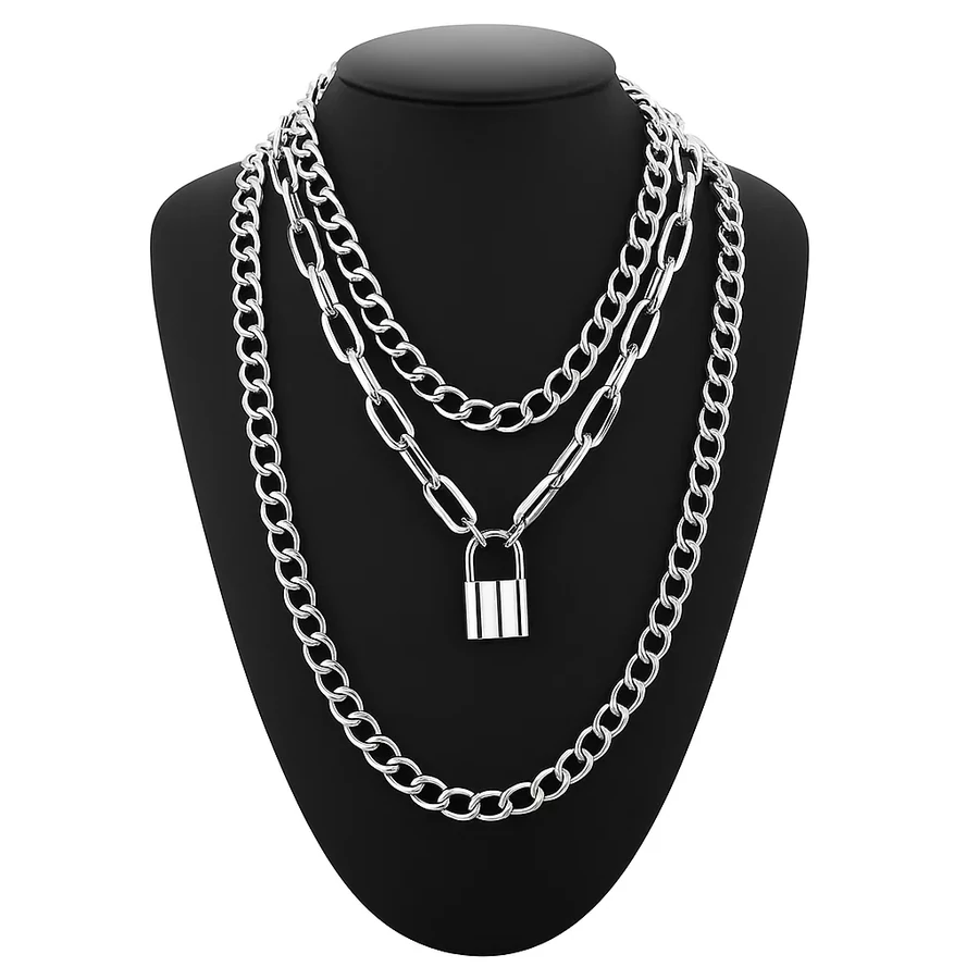 Háromsoros lakatos punk nyaklánc – a lázadó stílus megtestesítője