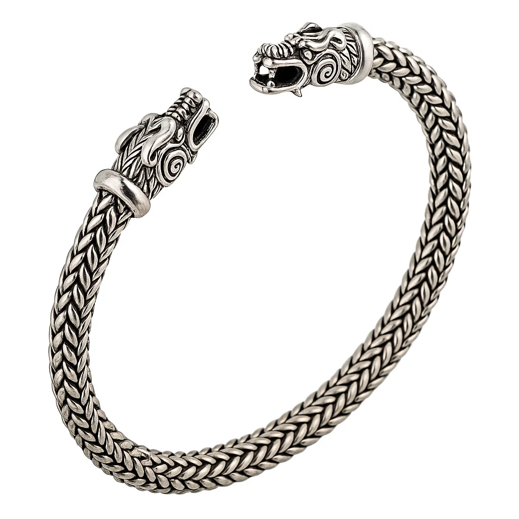 Ez a sárkányos viking karkötő valódi karaktert ad megjelenésednek. A markáns sárkányfej motívumok az ősi mitológiát idézik, és méltóságteljes megjelenést biztosítanak. A harcosok szimbólumaként ez az ékszer nem csupán látványos, de mély jelentéssel is bír.