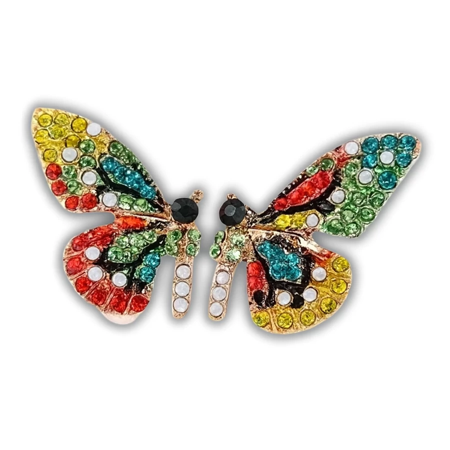 Ez a színes pillangós fülbevaló igazi ékszercsemege azok számára, akik szeretik a játékos, mégis elegáns kiegészítőket. A csillogó strasszkövekkel kirakott pillangó motívum a szabadság, a nőiesség és az átalakulás szimbóluma, amely bármilyen öltözéket különlegessé varázsol. Könnyed, mégis figyelemfelkeltő megjelenésével ideális választás hétköznapi viselethez és különleges alkalmakra is.