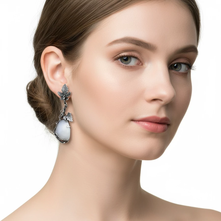 A fülbevaló tartós fémötvözetből készült, amely hosszú élettartamot biztosít, míg az opálos kő természetes fényjátéka különleges csillogást ad. 2,5 cm hosszúságával és beszúrós kialakításával kényelmesen viselhető egész nap. A szőlőlevél és szőlőszem formák aprólékos mintázata valódi mestermunkát tükröz. Ha szereted az elegáns női fülbevalókat, ez a darab minden bizonnyal a kedvenced lesz.