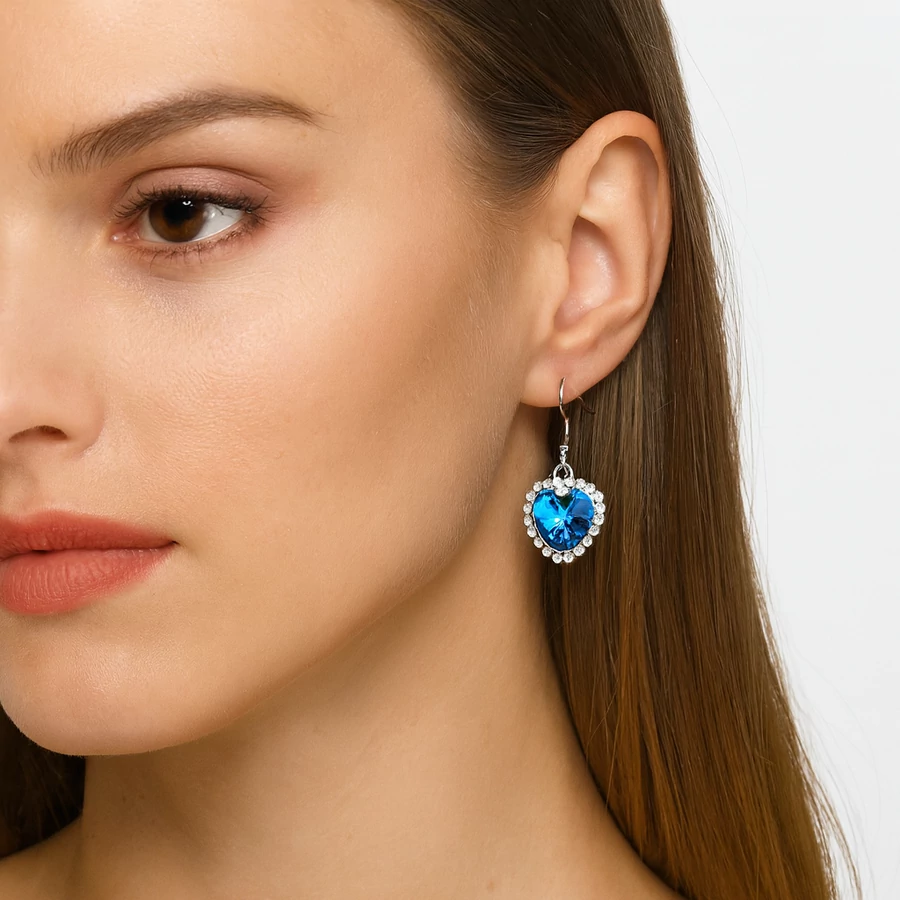 Titanic Az Óceán Szíve fülbevaló káprázatos zafírkék strasszkövekkel díszítve. Tökéletes Titanic ajándék romantikusoknak és a film szerelmeseinek.