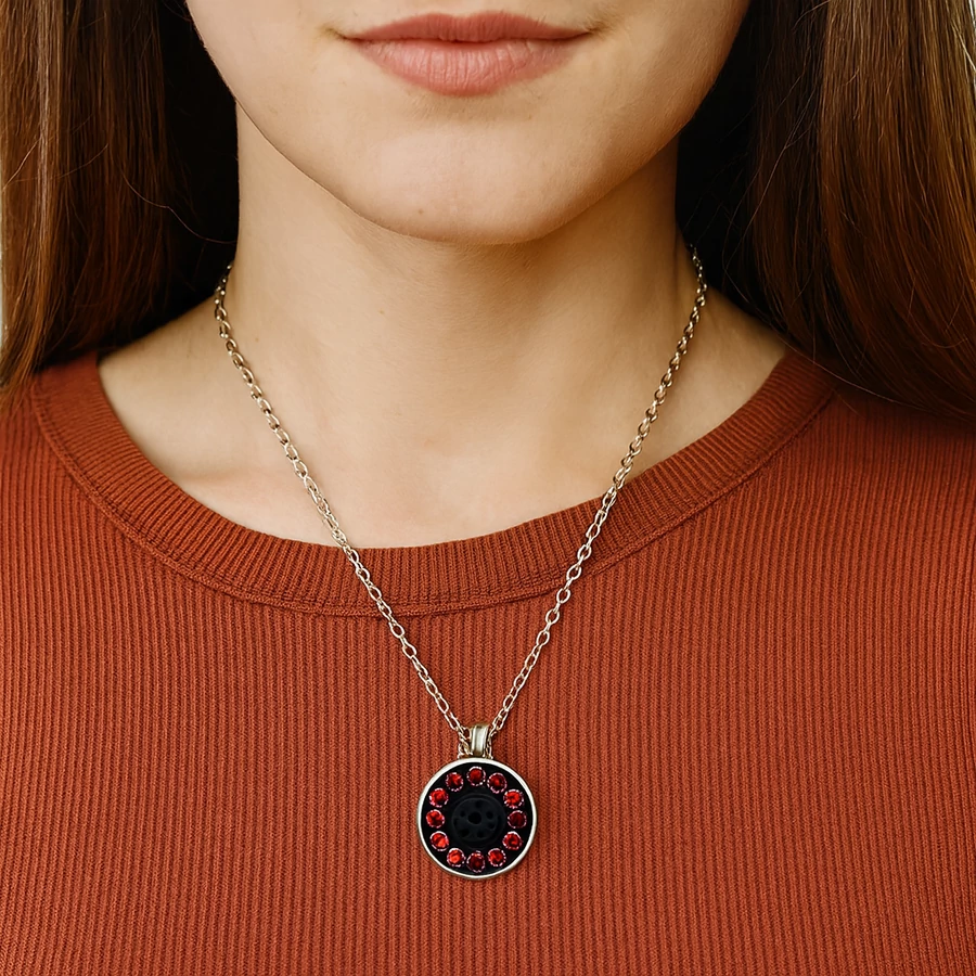 Ez a Naruto nyaklánc különleges üvegmedállal készült, amely piros-fekete dizájnjával azonnal magára vonzza a tekintetet. A részletes kidolgozás és a színek harmóniája tökéletesen visszaadja a sorozat hangulatát, így bármely rajongó számára igazi kincs lehet ez az ékszer.
