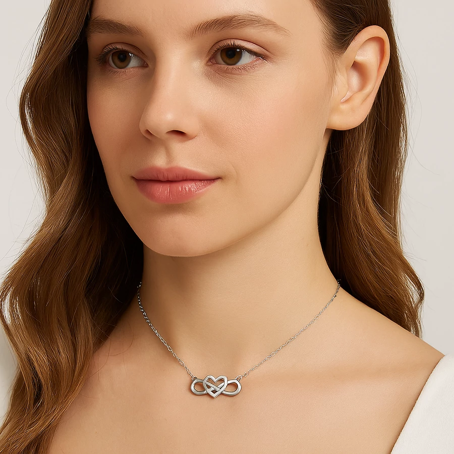 Ez a végtelen jeles szíves nyaklánc egyszerre testesíti meg az örök szerelmet és a ragyogó stílust. A végtelen jel és a szív szimbólumát ötvöző medált apró, csillogó strasszkövek díszítik, így garantáltan megkapja a figyelmet. Egy kiegészítő, ami nem csak divatos, hanem érzelmi jelentéssel is bír – a szeretet, a kötődés és a meghittség jelképe.