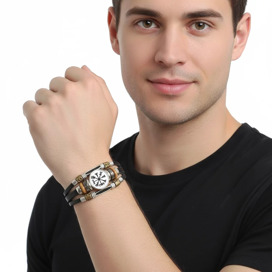Ez a karakteres férfi bőr karkötő a viking harcosok szellemiségét és bölcsességét idézi meg. A központi iránytű szimbólum a viking kultúrában a helyes irányt és a belső útmutatást jelentette – ma pedig azt az erőt szimbolizálja, amely mindig segít célhoz érni. Az erőteljes formavilág és a fekete bőr látványa azonnal magára vonja a tekintetet, így ez a kiegészítő nemcsak stílusos, hanem jelentéssel is bír.
